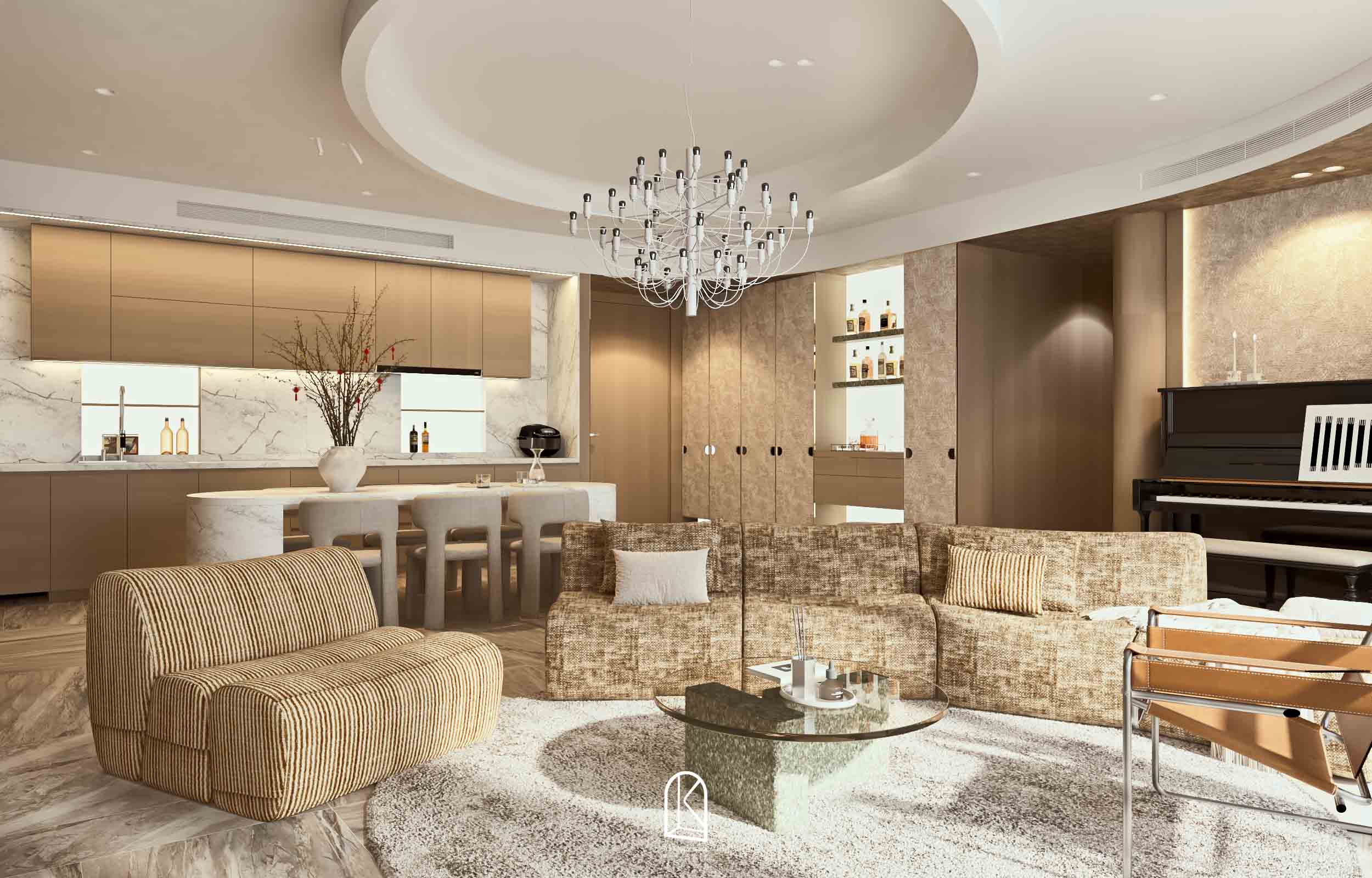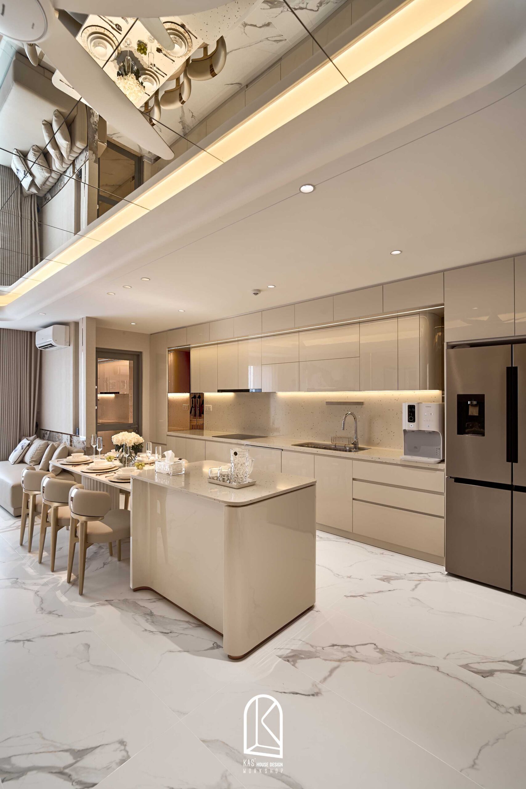 Glamo Suite – một dự án cải tạo lại toàn bộ nội thất căn hộ của Kas’ House Design. Một căn hộ 2 phòng ngủ điển hình có diện tích 66m2 tọa lạc tại quận Bình Tân, TP.HCM. Thiết kế căn hộ được lấy ý tưởng từ đường cong cách điệu của những cánh hồng dát vàng, cùng sự trở lại của các họa tiết kẻ sọc, quả trám hay tartan,… những ấn tượng mà ta thường thấy ở các phụ kiện thời trang, xa xỉ phẩm. Toàn bộ căn hộ khoác lên mình tông màu nude trendy kết hợp cùng những đường kẻ màu vàng champagne lấp lánh. Sang trọng là sự hài hoà, thanh lịch, tinh tế trong từng chi tiết tựa một bản giao hưởng điệu nghệ mang đến những trải nghiệm sống đáng giá cho người sở hữu.