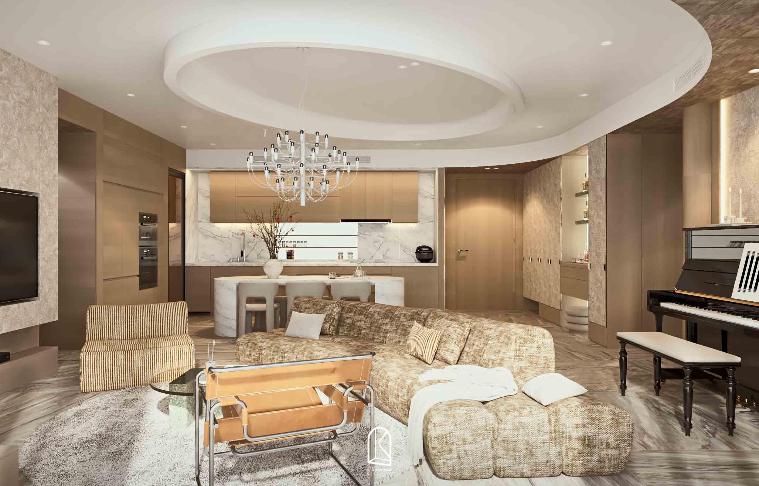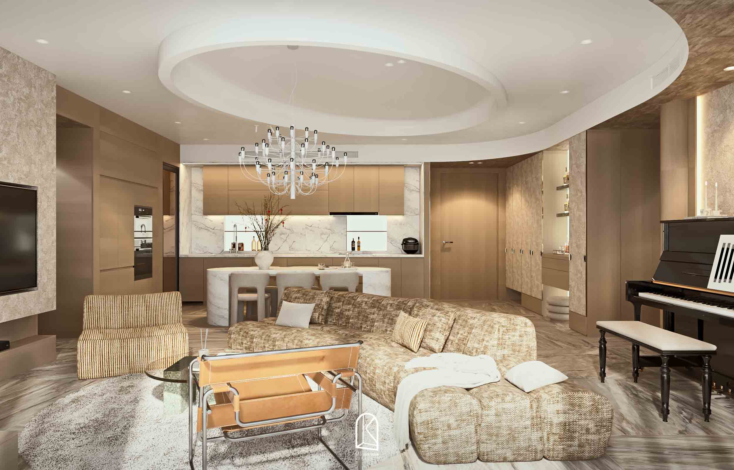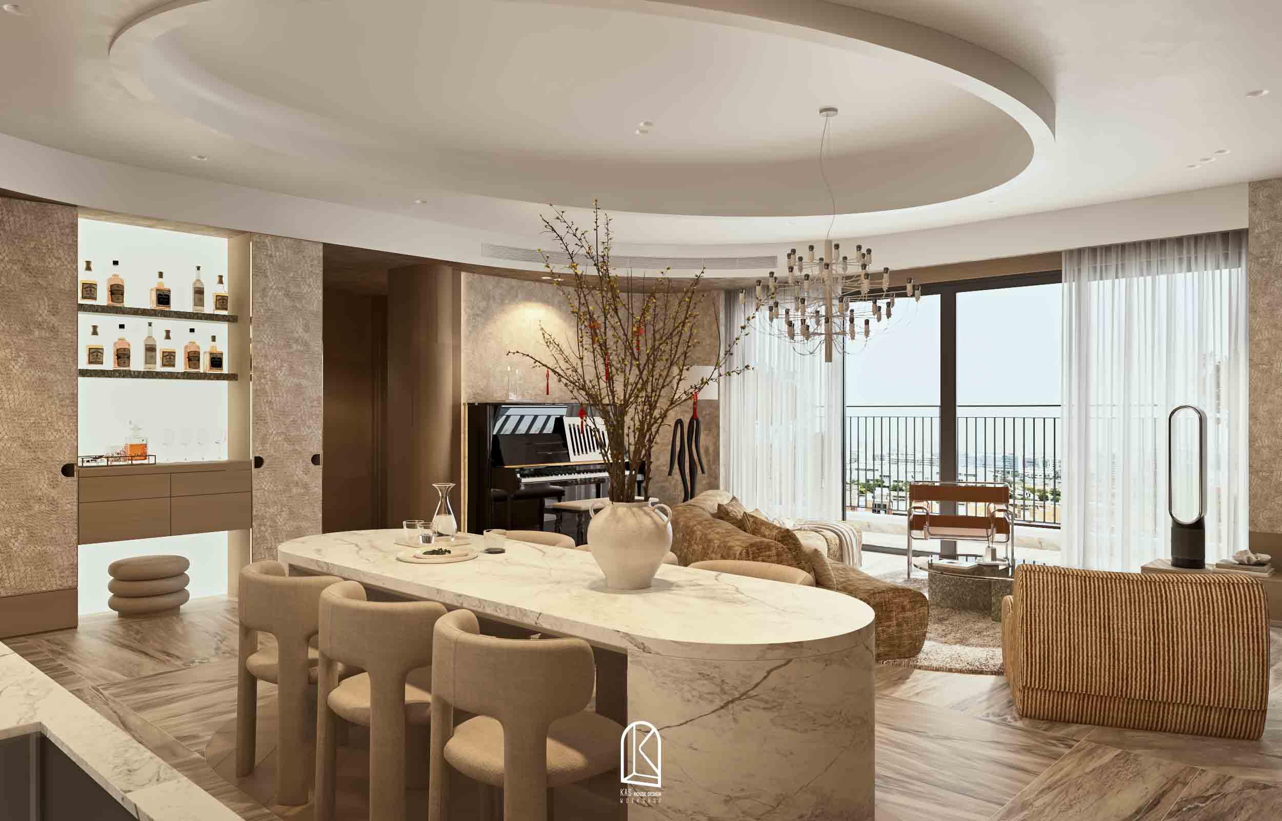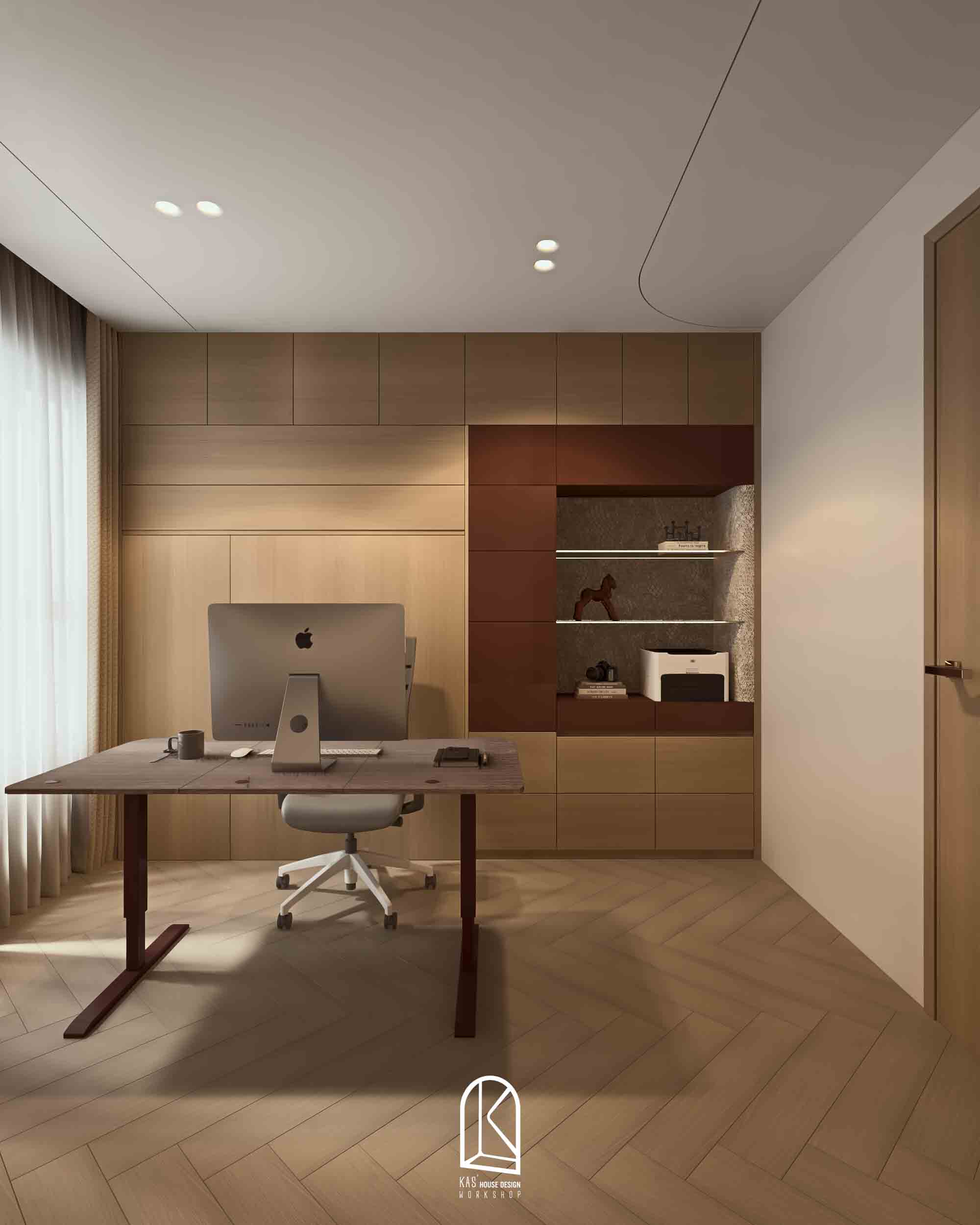 Kas đã thay đổi toàn bộ layout bàn giao thô thành 2PN và một phòng làm việc, các nội thất được sắp xếp ngẫu hứng, mang đến cảm giác “sống” cho một không gian tự do. Và khi… không gian không bị ràng buộc bởi những khuôn mẫu cứng nhắc, nó tự do kể câu chuyện của riêng mình. Mỗi đường nét, mỗi chất liệu, mỗi gam màu đều hòa quyện một cách tự nhiên, tạo nên một tổng thể vừa lạ, vừa cuốn hút.