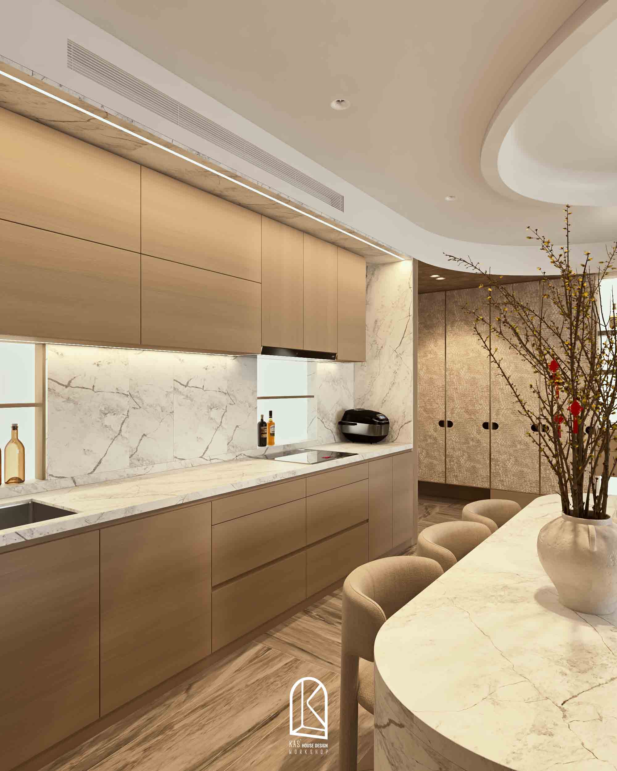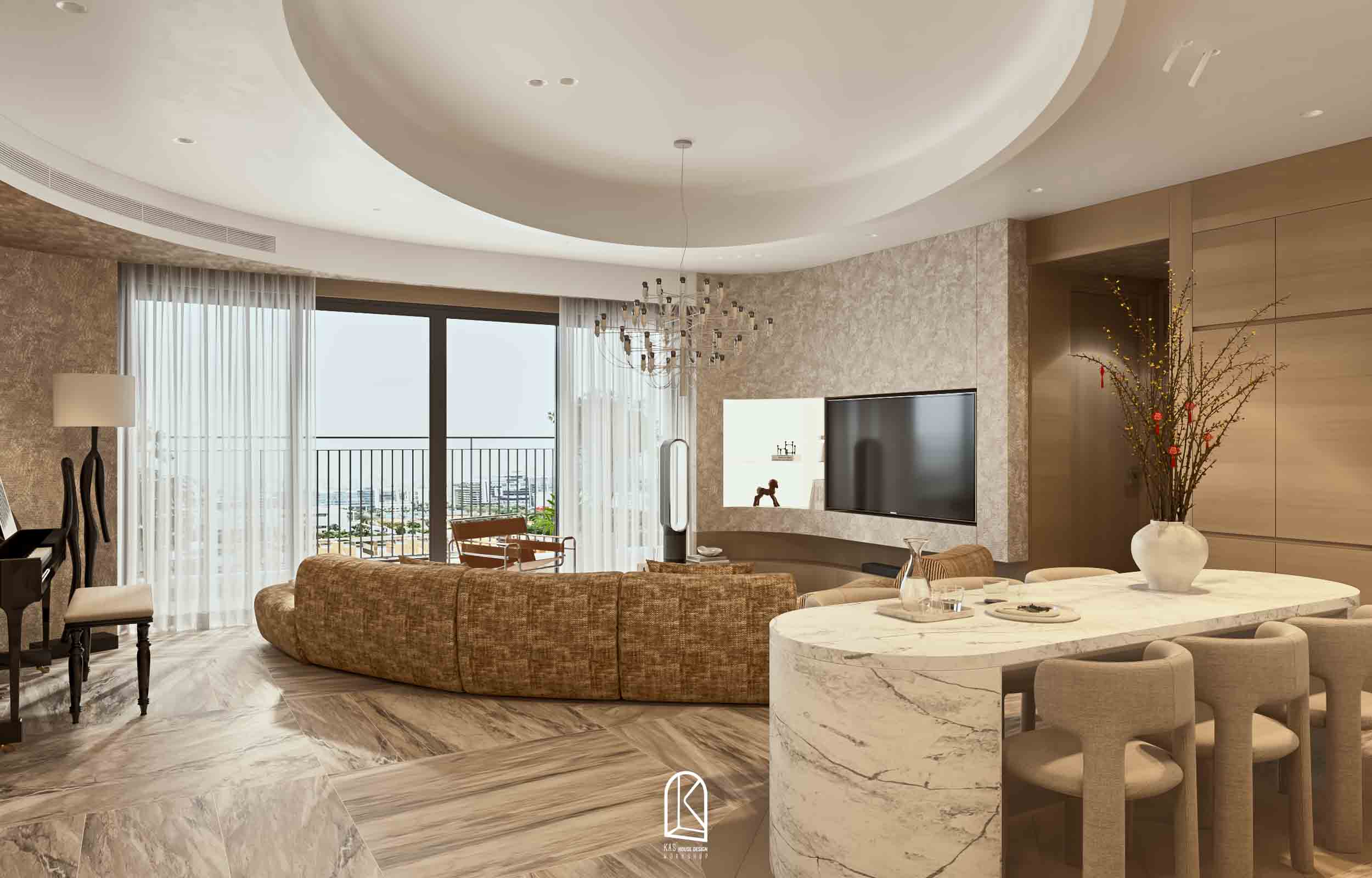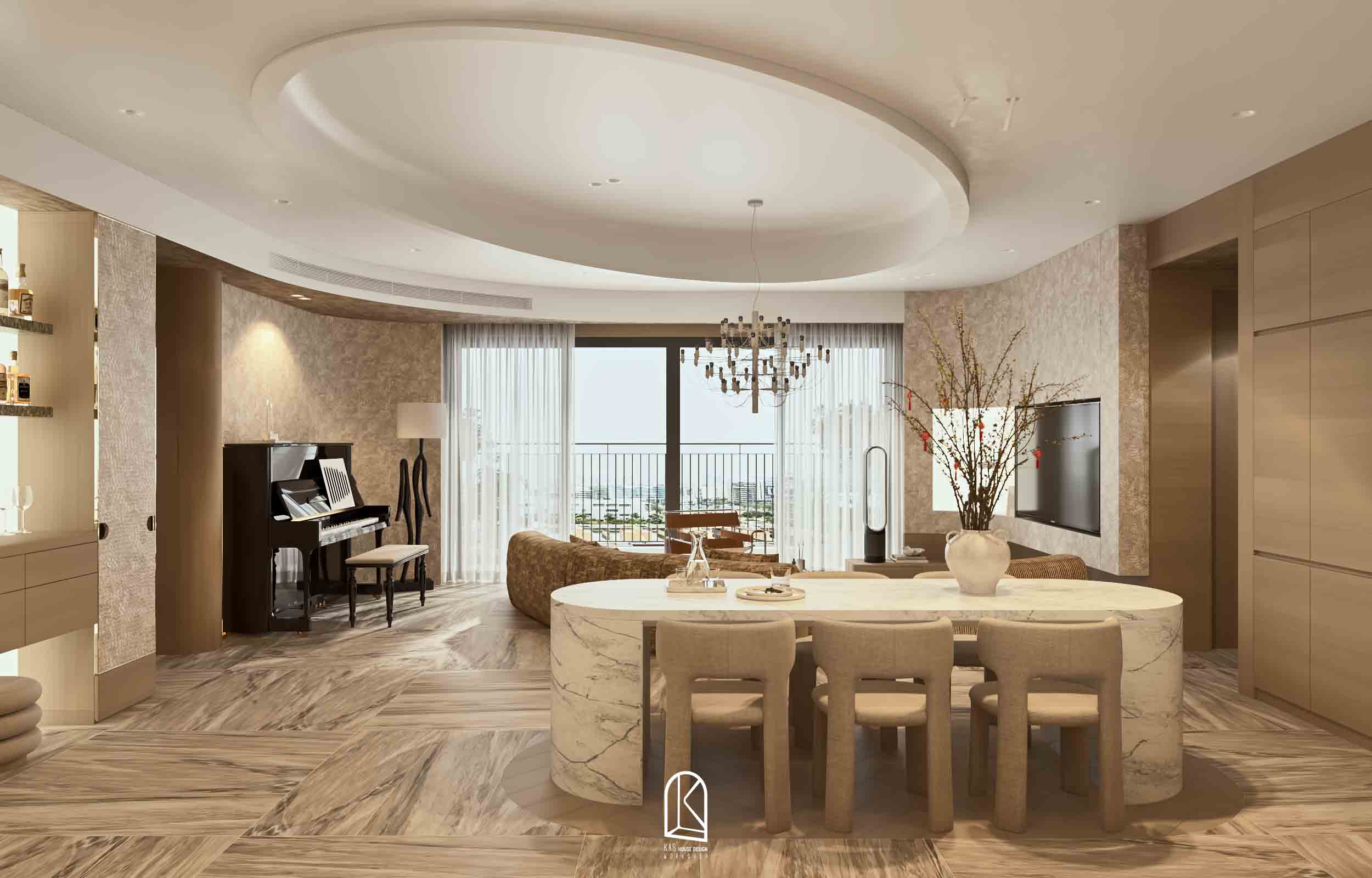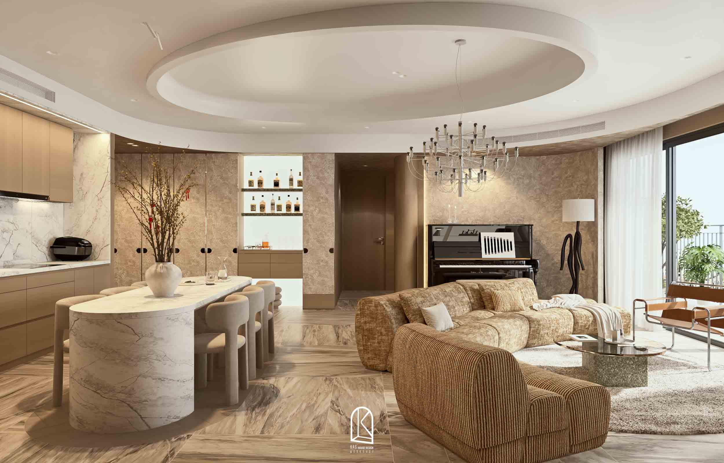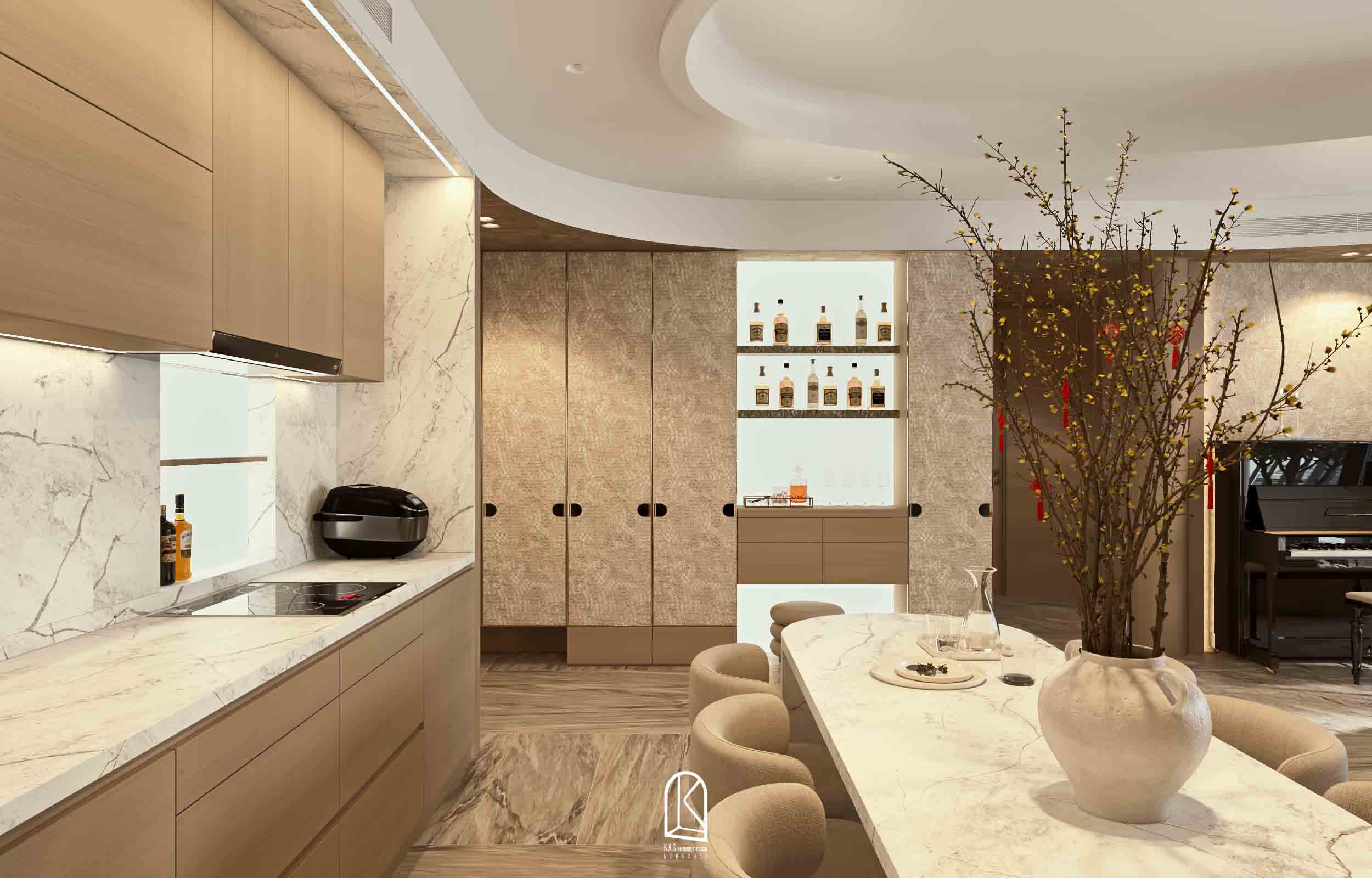 Kas đã thay đổi toàn bộ layout bàn giao thô thành 2PN và một phòng làm việc, các nội thất được sắp xếp ngẫu hứng, mang đến cảm giác “sống” cho một không gian tự do. Và khi… không gian không bị ràng buộc bởi những khuôn mẫu cứng nhắc, nó tự do kể câu chuyện của riêng mình. Mỗi đường nét, mỗi chất liệu, mỗi gam màu đều hòa quyện một cách tự nhiên, tạo nên một tổng thể vừa lạ, vừa cuốn hút.